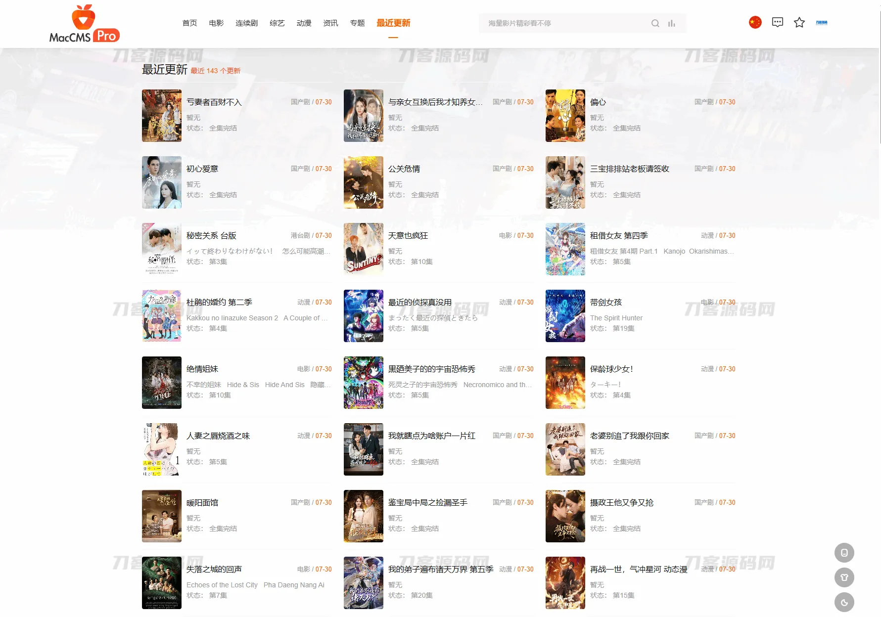 最新Pro版视频影视系统源码 含9套模板